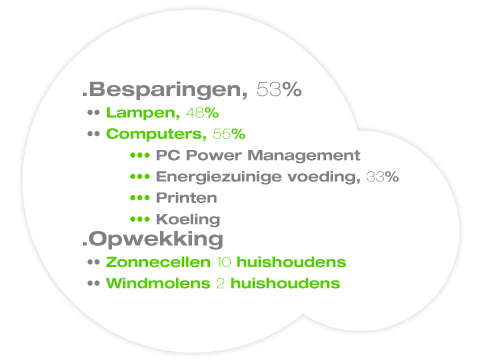 Een besparing van 55% en het overige gebruik wordt groen opgewekt, de computerzaal is nu CO2 neutraal.